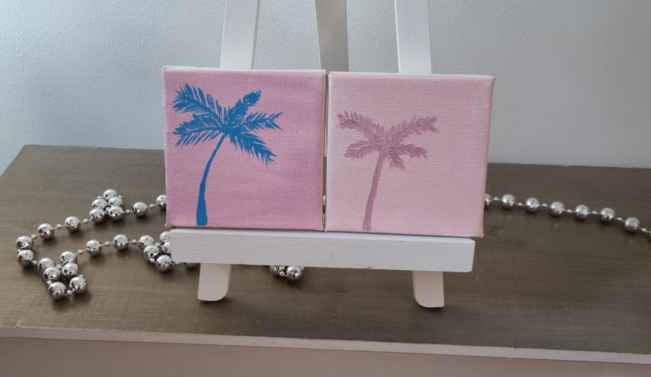 Pikkupalmut, kaksi teosta, akryylimaalaus
